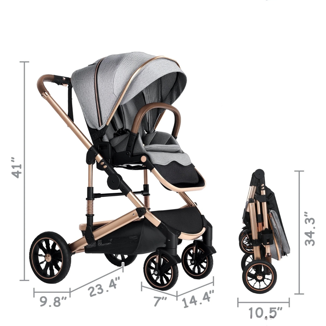 Snugmelo 3-in-1 Luxury Baby Stroller with High Landscape Design